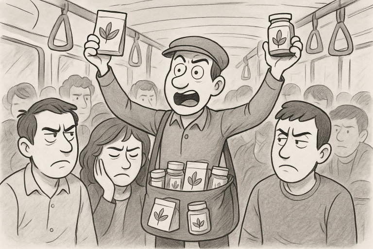 فالمشهد يتكرر بشكل شبه يومي: ما إن تنطلق الحافلة حتى يرتفع صوت أحد هؤلاء الباعة، مقدما نفسه كـ”تاجر” أو “خبير في التداوي بالأعشاب”، ليشرع في عرض بضاعته بأسلوب دعائي صاخب، يخلط بين الوعود بالشفاء السريع وبين عبارات مثيرة للشفقة لجذب انتباه الركاب. وبينما يحاول البعض تجاهل الأمر، يجد آخرون أنفسهم محاصرين وسط الزحام، عاجزين عن الاعتراض أو حتى تغيير أماكن جلوسهم.