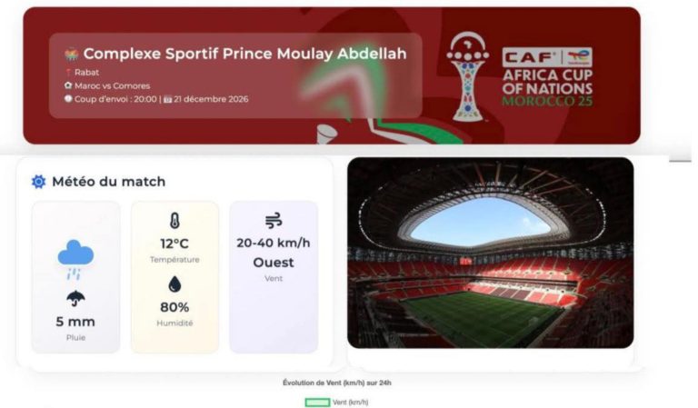 وتهدف هذه الخدمة، وفق بلاغ رسمي لوزارة التجهيز والماء، إلى تزويد المنظمين ووسائل الإعلام والوفود الرسمية، وكذلك الجمهور العام، بتوقعات جوية محدثة وموثوقة لكل مباراة على حدة، تشمل درجة الحرارة وسرعة الرياح والتساقطات ونسبة الرطوبة، إضافة إلى أي تنبيهات جوية محتملة.