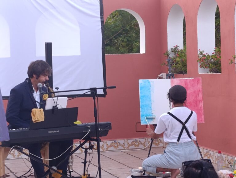 الفعالية، التي احتضنها فضاء “Casa de la paz” على الساعة الثامنة مساء، عرفت مشاركة الفنان التشكيلي Melissarte22 وعازف الساكسفون الإسباني خوسيه بوداديرا، اللذين قدما عرضا تفاعليا جعل الحاضرين يعيشون لحظات يتقاطع فيها البصر والسمع؛ فالموسيقى تُرى، واللوحات تُسمع.